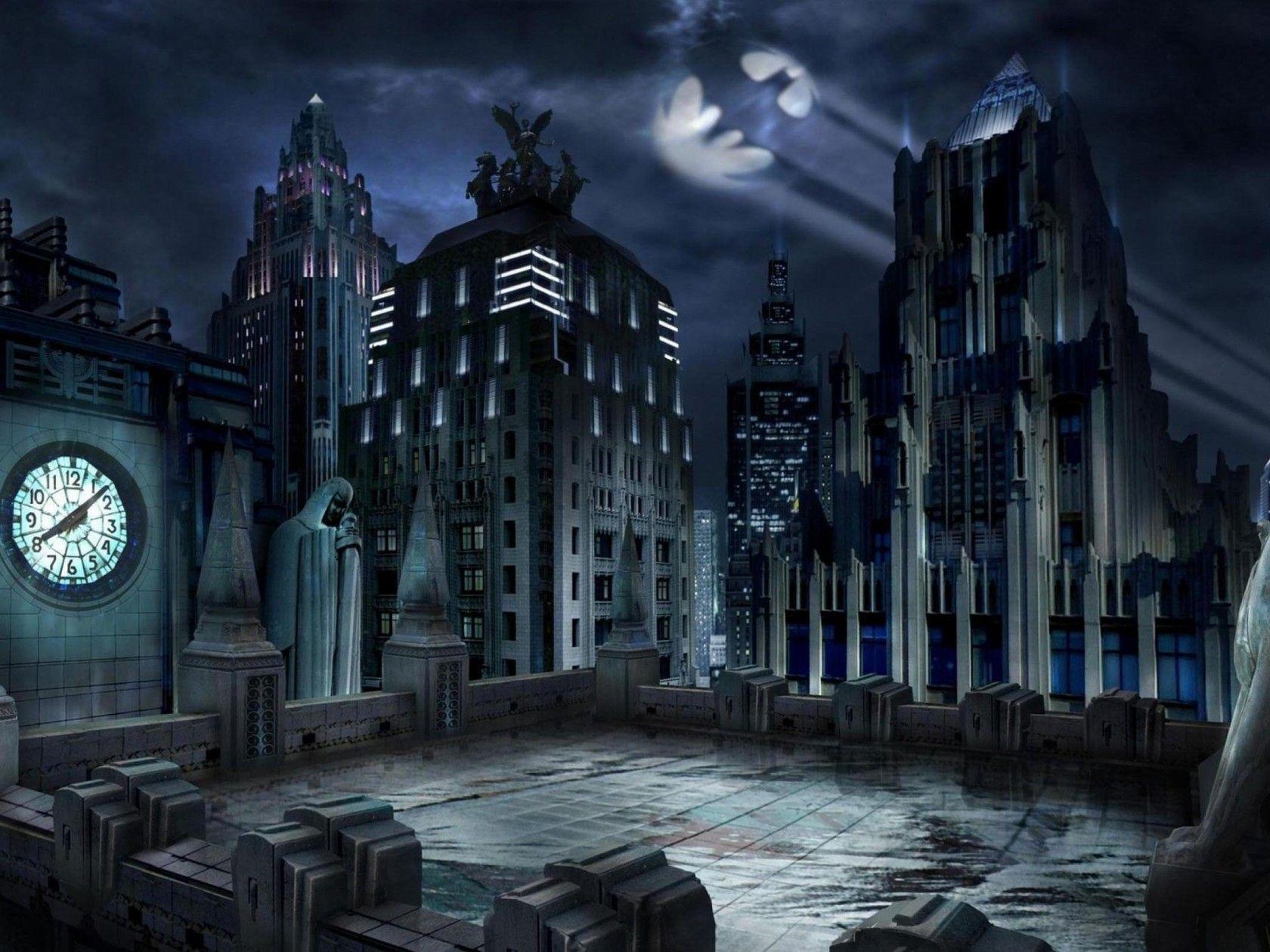 gotham batman dc superhero comics concept artwork background skyscraper wallpapers signal bat desktop backgrounds mobile wide pc 1920 tags 1080