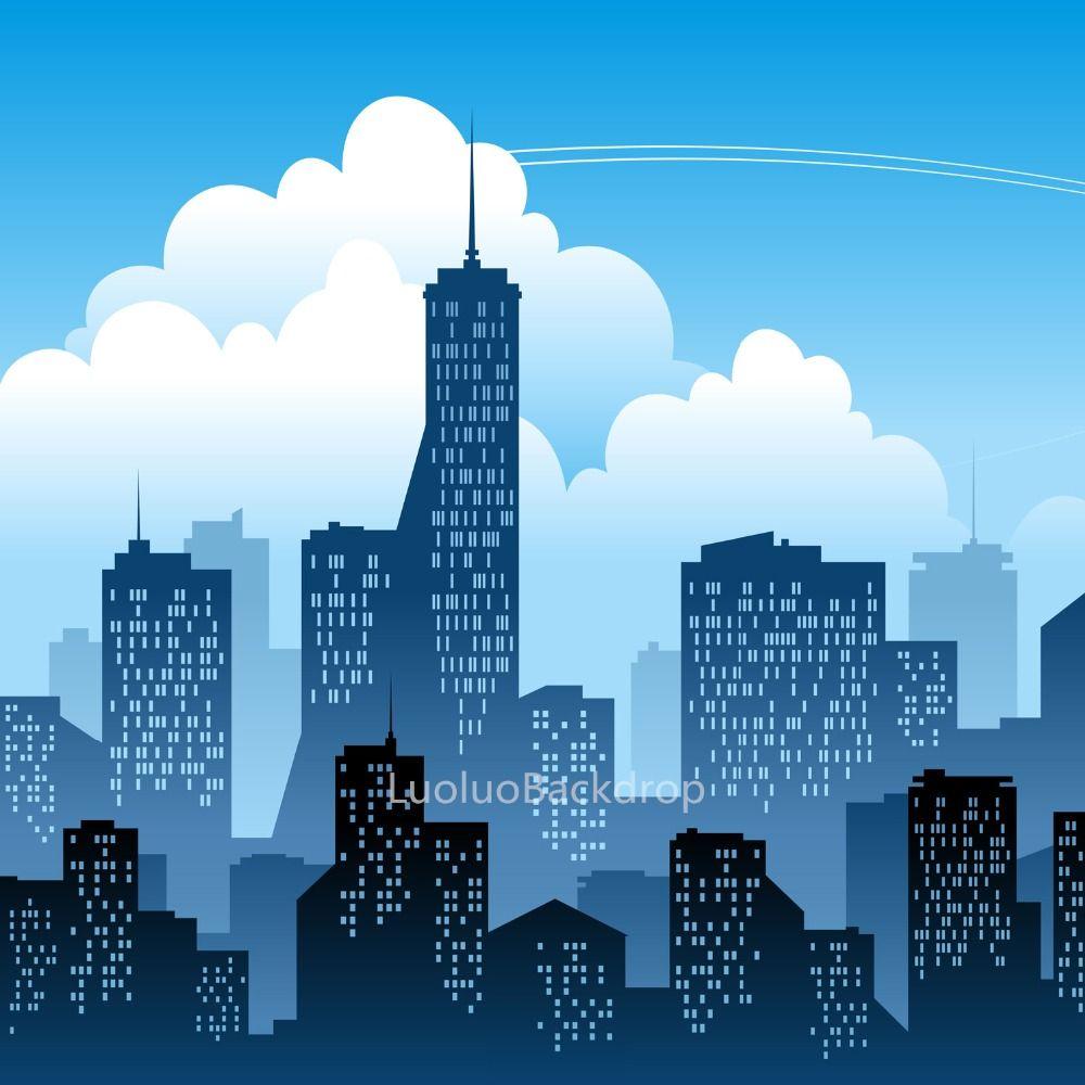superhero backdrop cartoon birthday buildings booth themed ciudad animados sky fondos hero fondo printed edificios aliexpress larger