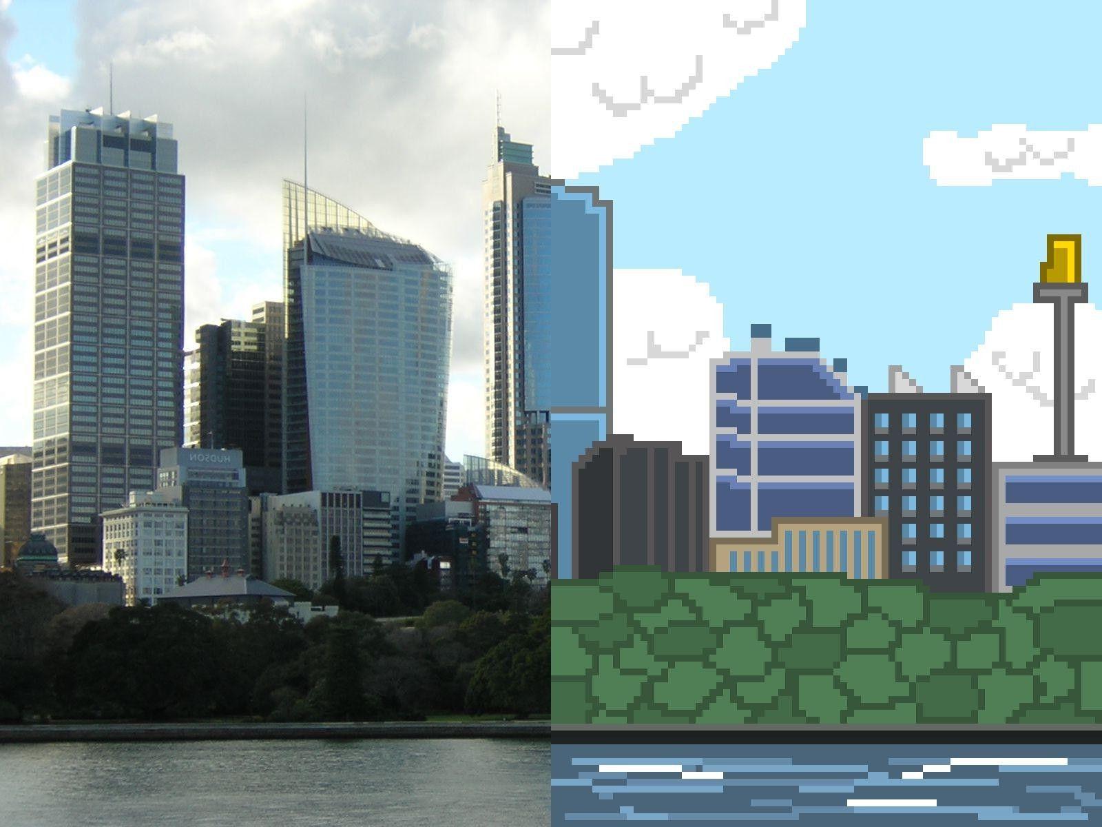 pixel building skyscraper cityscape river pixels sydney backgrounds australia wallpapers wallpaperaccess desktop manipulation clouds trees