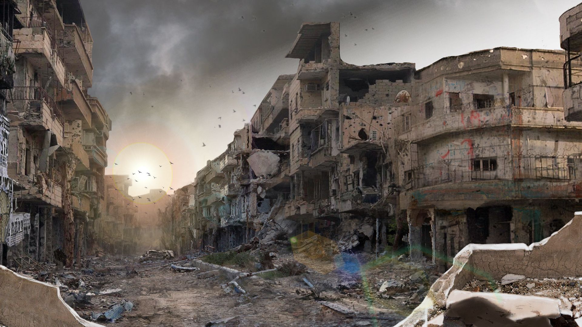 destruction kobani building broken town border syrian kobane destroyed war buildings drawing wrecked syria road painting through warfare apocalypse runs