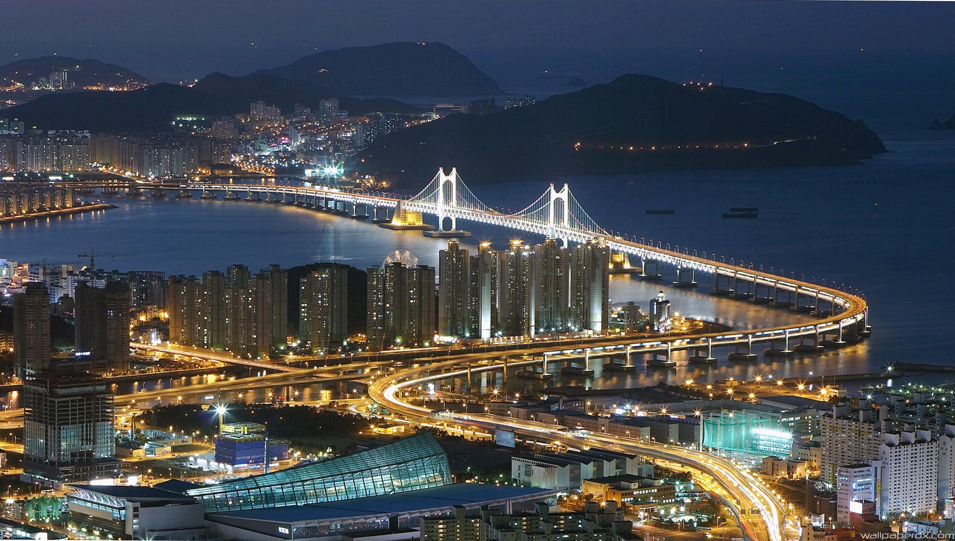 korea busan south bridge gwangan megapolis aerial screen korean night nightlife desktop seoul cities resolution wallpapers